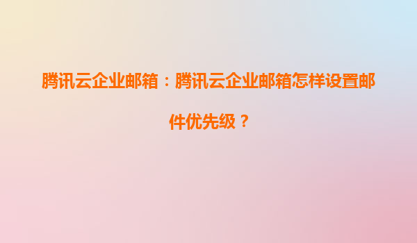 2025-06-28腾讯云企业邮箱邮件优先级设置全攻略:提升企业沟通效率 在快节奏的商务沟通中,邮件优先级设置能帮助重要信息从海量邮件中脱颖而出。腾讯云企业邮箱作为专业的企业级通信解决方案,提供了完善...