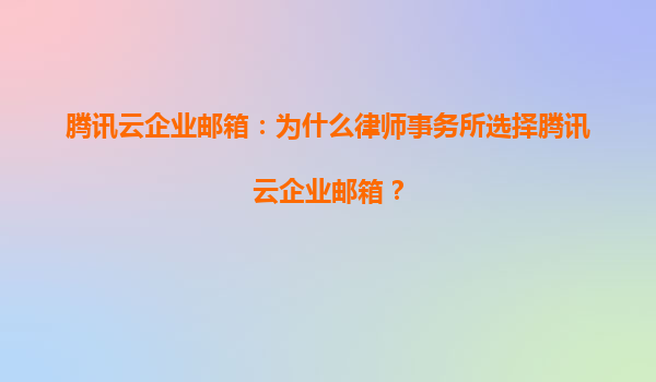 2025-06-28为什么律师事务所纷纷选择腾讯云企业邮箱? 一、律师事务所的邮箱核心需求 在信息化时代,律师事务所对邮件系统有着严苛要求:安全性需保障客户敏感数据零泄露,稳定性要确保法律文书准...