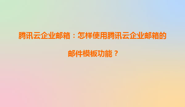 腾讯云企业邮箱邮件模板功能:高效沟通的秘密武器 一、为什么需要邮件模板功能? 在日常商务沟通中,大量重复性邮件(如客户问候、会议通知、产品推广)耗费企业人员宝贵时间。腾讯云企...