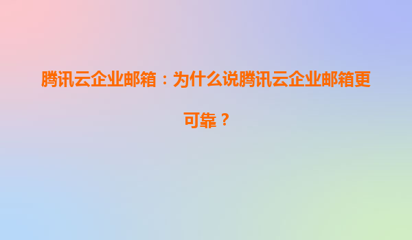 2025-06-28以下是根据要求撰写的关于腾讯云企业邮箱可靠性的文章,结合腾讯云及代理商优势,以HTML格式输出: 腾讯云企业邮箱:企业级通信的可靠之选 一、为什么企业需要更可靠的邮箱系统? 在数字化转型加速的今天,企业邮...