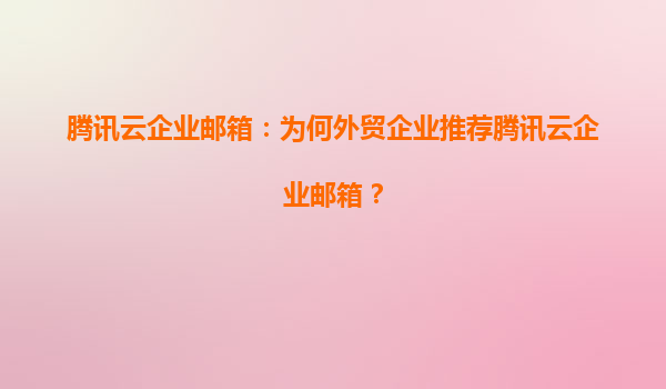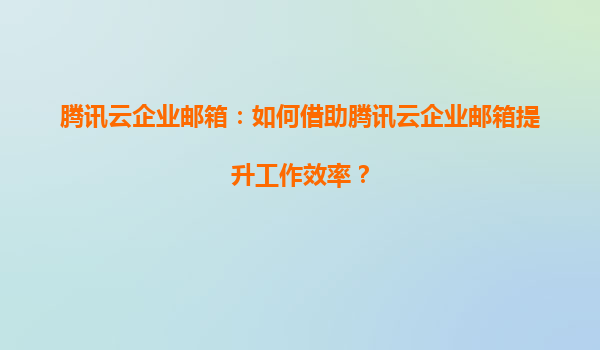 2025-06-28#腾讯云企业邮箱:提升工作效率的智能解决方案 以下是我为您撰写的关于腾讯云企业邮箱提升工作效率的文章,以HTML格式呈现: 在...