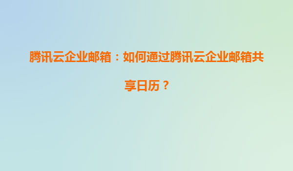 2025-06-26高效协作新体验:腾讯云企业邮箱共享日历功能深度解析 团队协作的时间管理革命 在快节奏的商业环境中,高效的日程管理已成为企业协同办公的核心需求。腾讯云企业邮箱推出的共享日历功能...