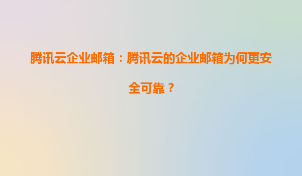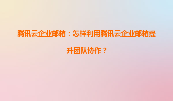 2025-06-20腾讯云企业邮箱:打造高效团队协作的数字枢纽 企业协作新引擎,沟通效率大提升 在数字化办公时代,团队协作效率直接影响企业竞争力。腾讯云企业邮箱作为专业的商务沟通平台,通过智能化邮件管理功能显著提升团...