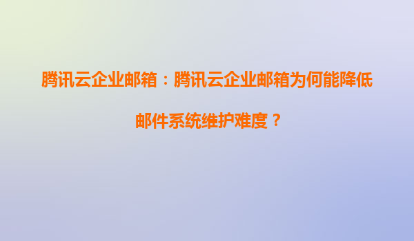 2025-06-20腾讯云企业邮箱:如何重塑企业邮件系统维护体验? 传统邮件维护的痛点与云端转型契机 在数字化转型浪潮中,企业邮件系统如同"数字中枢神经",但传统自建方案常伴随三大痛点:服务器宕机...