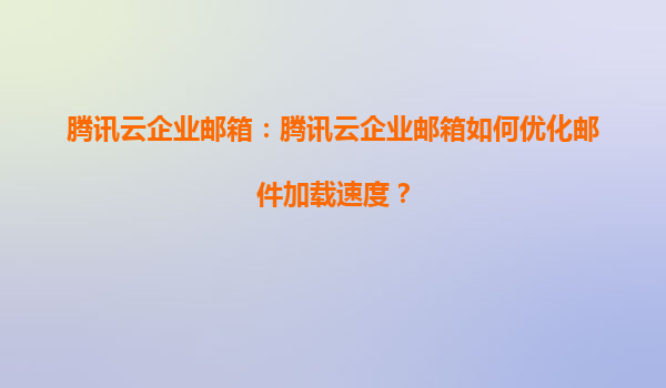 2025-06-20腾讯云企业邮箱:优化邮件加载速度的五大核心策略 在数字化办公时代,邮件加载速度直接影响企业沟通效率。腾讯云企业邮箱凭借全球基础设施与智能技术,通过多维度优化实现毫秒级邮件加载体验。...
