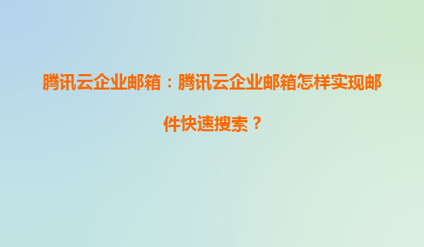 2025-06-15腾讯云企业邮箱如何实现邮件快速搜索?技术解析与优势实践 在数字化办公时代,海量邮件的高效检索成为企业沟通的关键痛点。腾讯云企业邮箱凭借其强大的技术架构和云计算优势,实现了秒级响应的...