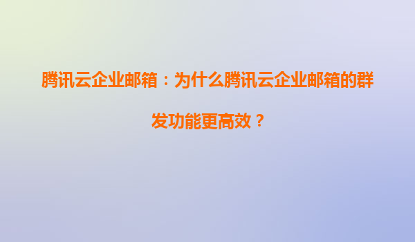 2025-06-15腾讯云企业邮箱:为什么群发功能更高效? 引言:高效群发在商务场景中的核心价值 在现代企业沟通中,邮件群发是市场推广、内部通知和客户维护的关键手段。腾讯云企业邮箱通过深度整合云...