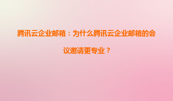 2025-06-15腾讯云企业邮箱:为什么会议邀请功能更显专业? 在快节奏的商业环境中,会议邀请函不仅是简单的日程通知,更是企业专业形象的缩影。腾讯云企业邮箱凭借其强大的会议邀请功能,正成为众多企业提升沟通效率与品牌...