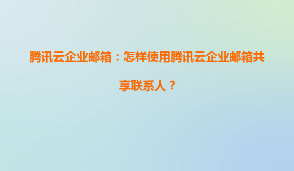2025-06-14腾讯云企业邮箱共享联系人功能详解:高效协同与生态优势 一、为什么需要共享联系人? 在企业协作中,销售团队需要共享客户资源,行政部门需统一外部合作方信息——腾讯云企业邮箱的"共享...