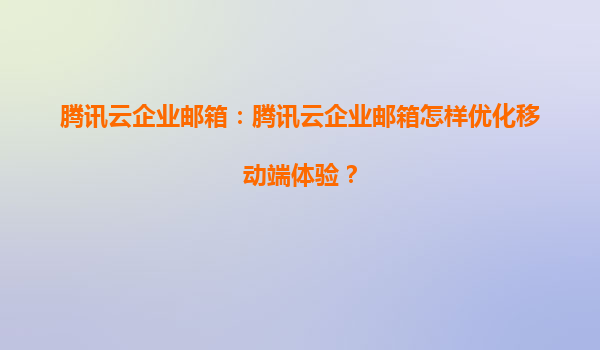 2025-06-14腾讯云企业邮箱:重塑高效移动办公新体验 移动优先时代的企业通信变革 在智能手机深度融入工作的今天,企业邮箱的移动端体验直接决定着团队协作效率。腾讯云企业邮箱依托20亿级用户的通信技术积累,针对移...
