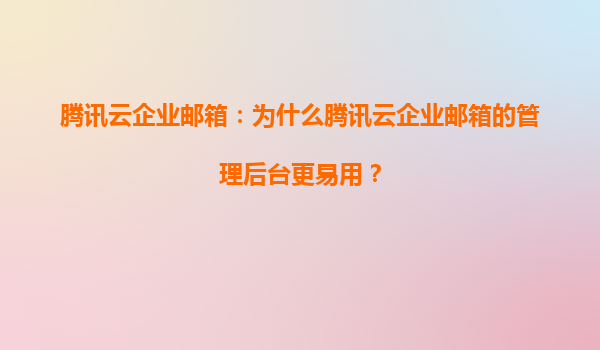 2025-06-14腾讯云企业邮箱:为什么管理后台更易用? 在数字化转型浪潮中,企业邮箱作为基础通信工具,其管理效率直接影响组织运营效能。腾讯云企业邮箱凭借智能化的管理后台设计,在众多解决方案中脱颖而...