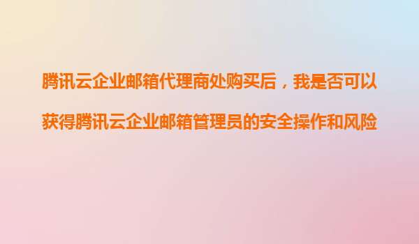 2025-11-07腾讯云企业邮箱代理商处购买后是否提供管理员安全及风控培训 一、腾讯云企业邮箱的核心优势与服务保障 腾讯云企业邮箱作为国内领先的企业级邮箱解决方案,具备以下核心优势: 高安全性保...