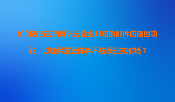 2025-11-07如何设置腾讯云企业邮箱的邮件防撤回功能——守护重要信息安全 一、腾讯云企业邮箱的核心优势 在开始设置防撤回功能前,首先要了解为何选择腾讯云企业邮箱: 企业级安全防护:采用银行级...