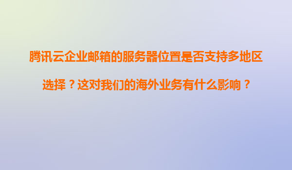 2025-11-07腾讯云企业邮箱的服务器位置是否支持多地区选择?这对我们的海外业务有什么影响? 一、腾讯云企业邮箱的服务器位置支持多地区选择 腾讯云企业邮箱作为一款高效的企业级邮件服务,其服务器架构采用...
