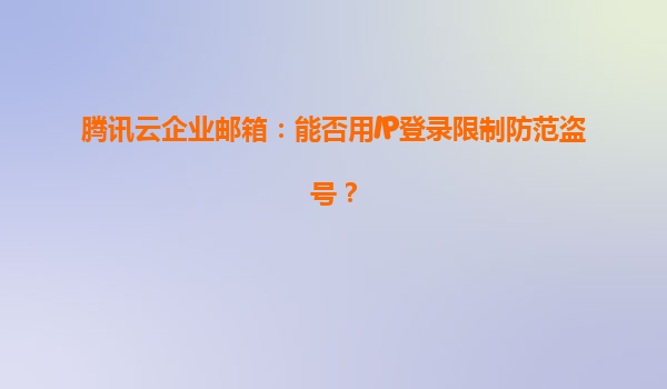 2025-06-10腾讯云企业邮箱:用IP登录限制构筑企业邮箱安全防火墙 一、企业邮箱安全面临的核心挑战 在数字化转型加速的今天,企业邮箱已成为商业通信的命脉。腾讯安全团队2022年数据显示,企业邮箱...