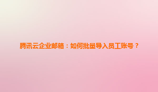 2025-06-09腾讯云企业邮箱批量导入员工账号全攻略:高效管理,一步到位 在数字化办公时代,企业邮箱作为核心沟通工具,其账号管理效率直接影响团队协作效能。腾讯云企业邮箱提供的批量导入功能,让管理员能在...