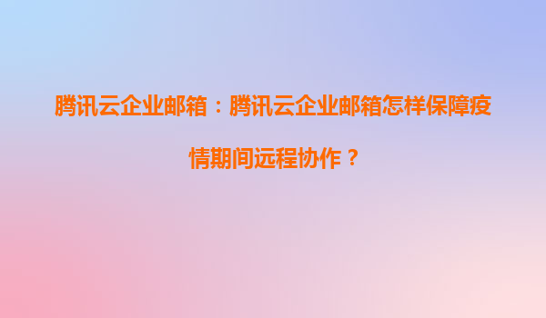 2025-06-09腾讯云企业邮箱:疫情期间远程协作的坚实后盾 全时全域访问保障协作连续性 疫情期间居家办公常态化,腾讯云企业邮箱提供全天候访问能力。依托腾讯云全球1300+加速节点,无论员工身处何地,均可通过网页...
