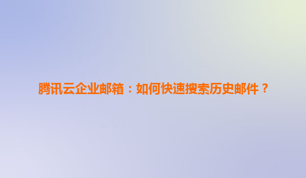 2025-06-04腾讯云企业邮箱:如何快速高效搜索历史邮件? 一、为什么历史邮件搜索如此关键? 在企业日常运营中,邮件承载着合同确认、项目沟通、决策记录等重要信息。据统计,职场人平均每天处理40+...