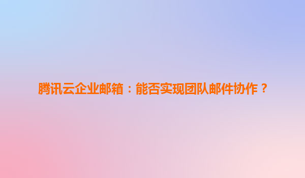 2025-06-04腾讯云企业邮箱:打造高效团队邮件协作新体验 在数字化办公时代,邮件协作已成为企业高效运转的核心环节。腾讯云企业邮箱凭借其强大的团队协作功能,重新定义了企业邮件沟通方式。本文将深度解...