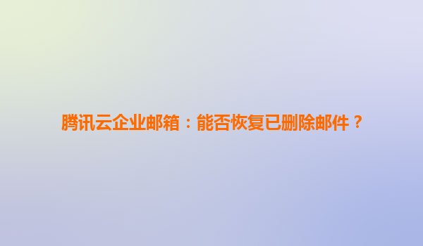 2025-06-04腾讯云企业邮箱:能否恢复已删除邮件?深度解析与操作指南 一、核心问题解析:邮件恢复的可能性 腾讯云企业邮箱支持有限时间内的已删除邮件恢复,这是其数据保护体系的重要组成部分: 回收站机制:普...