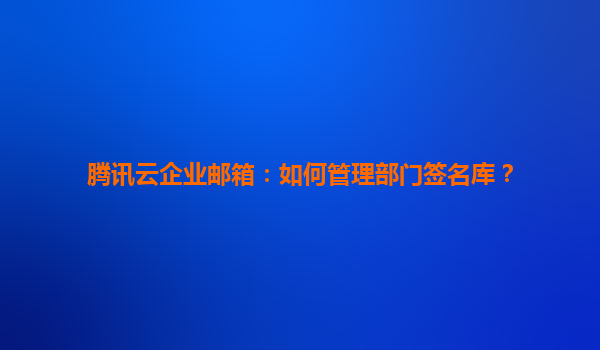 2025-06-03腾讯云企业邮箱:如何高效管理部门签名库 一、签名库管理的重要性 企业邮箱签名不仅是员工身份标识,更是品牌形象的重要载体。腾讯云企业邮箱的部门签名库功能,允许企业统一创建、管理和分配标准化签名模板...