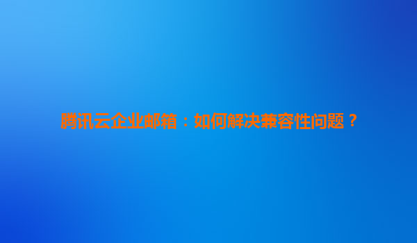 腾讯云企业邮箱:全方位解决兼容性问题,赋能企业高效沟通 在数字化办公时代,企业邮箱作为商务沟通的核心工具,其兼容性直接影响团队协作效率。腾讯云企业邮箱凭借强大的技术实力和生态整合能...