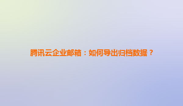 腾讯云企业邮箱归档数据导出全攻略:企业数据管理的核心能力 在数字经济时代,企业邮件数据已成为关键资产和合规要求的重要载体。腾讯云企业邮箱的邮件归档功能为企业提供了专业的数据留存解决...