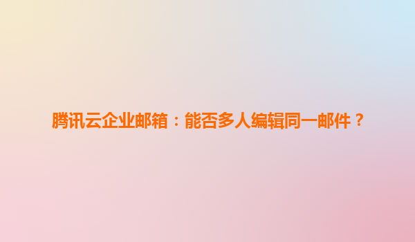 2025-06-02腾讯云企业邮箱:高效协同,多人编辑同一邮件的革新体验 打破协作壁垒的邮件编辑新模式 在传统邮件场景中,多人协作编辑邮件如同接力赛跑——需反复转发修改版本,既耗时又易出错。腾讯云企业邮箱...