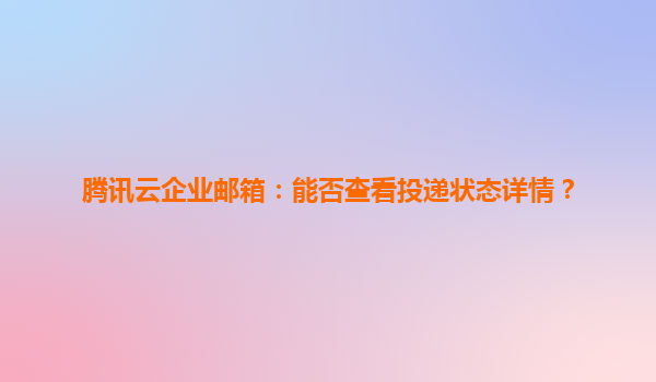 2025-05-31腾讯云企业邮箱:能否查看邮件投递状态详情?深度解析与优势对比 一、邮件投递状态查看:企业沟通的关键需求 在现代企业沟通中,邮件是否成功送达直接影响商务效率。腾讯云企业邮箱对此...