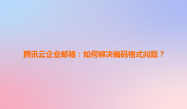 腾讯云企业邮箱:高效解决编码格式问题的最佳实践 一、企业邮箱编码问题的核心挑战 在国际化业务场景中,企业邮箱常面临三大编码难题: 跨语言乱码:中/日/韩文等双字节字符在海外服务器显示...