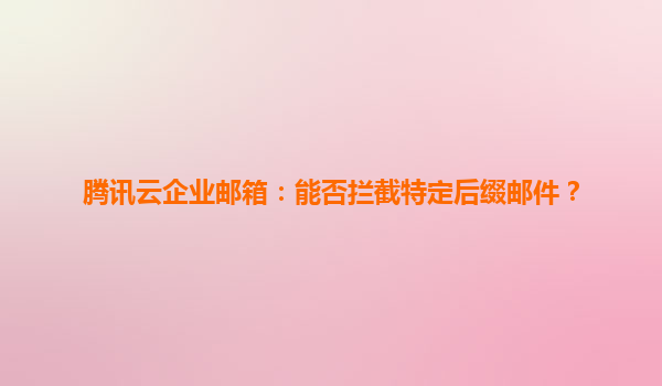 2025-05-30腾讯云企业邮箱能否拦截特定后缀邮件?深度解析与解决方案 一、核心需求:企业邮件安全管理的痛点 在日常企业运营中,大量垃圾邮件、钓鱼邮件和恶意邮件严重干扰工作效率。其中特定域名...