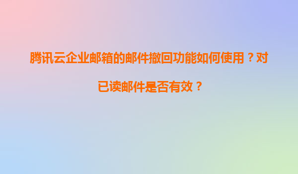 2025-11-06腾讯云企业邮箱邮件撤回功能详解 腾讯云企业邮箱作为国内领先的企业级邮箱服务,凭借稳定、安全、高效的特点,深受企业用户青睐。其中,邮件撤回功能是企业办公场景中非常实用的功能之一,尤其适用于误发邮件的情...