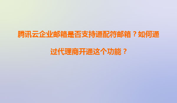 2025-11-06腾讯云企业邮箱通配符邮箱功能详解及代理商开通指南 一、腾讯云企业邮箱是否支持通配符邮箱? 腾讯云企业邮箱作为国内领先的企业级邮箱服务,全面支持通配符邮箱功能。通配符邮箱(如*@...