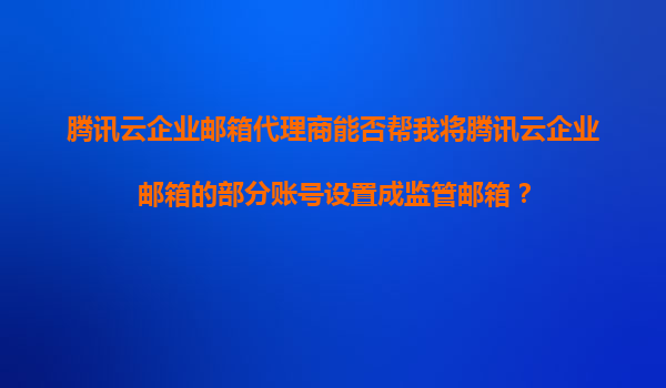 2025-11-06腾讯云企业邮箱代理商能否帮我将部分账号设置为监管邮箱? 一、腾讯云企业邮箱的监管邮箱功能 腾讯云企业邮箱作为国内领先的企业级邮件服务,提供了完善的监管邮箱(审计邮箱)功能。通...