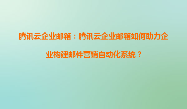 2025-05-18腾讯云企业邮箱如何助力企业构建邮件营销自动化系统? 一、腾讯云企业邮箱的核心优势 腾讯云企业邮箱基于云计算技术,提供高可用性、安全稳定的邮件服务,同时具备以下核心优势: 智能化...