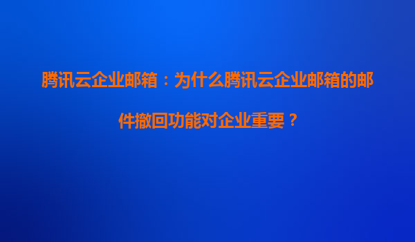 2025-05-18腾讯云企业邮箱:为什么邮件撤回功能对企业至关重要? 一、邮件撤回功能的核心价值 在数字化办公场景中,电子邮件作为企业内外沟通的核心工具,其内容往往涉及商业机密、合同条款或敏感决策。邮件撤回...