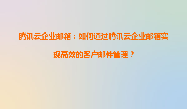 2025-05-18腾讯云企业邮箱:如何通过腾讯云企业邮箱实现高效的客户邮件管理? 一、高效客户邮件管理的重要性 在数字化商业环境中,客户邮件是企业与客户沟通的核心渠道之一。高效的邮件管理不仅能提升客户满意度...