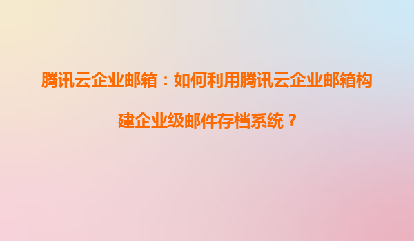 2025-05-18腾讯云企业邮箱:如何构建企业级邮件存档系统? 一、企业邮件存档的重要性与挑战 在数字化办公时代,企业邮件不仅是沟通工具,更是法律合规、知识管理的重要载体。金融、医疗、政府等行业需遵循《网络安全...