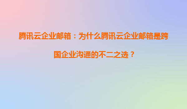2025-05-18如何利用腾讯云企业邮箱提升品牌专业形象? 一、企业邮箱:品牌形象的第一张名片 在数字化商业竞争中,企业邮箱不仅是沟通工具,更是品牌专业性的直观体现。使用腾讯云企业邮箱(如"name@yourcomp...