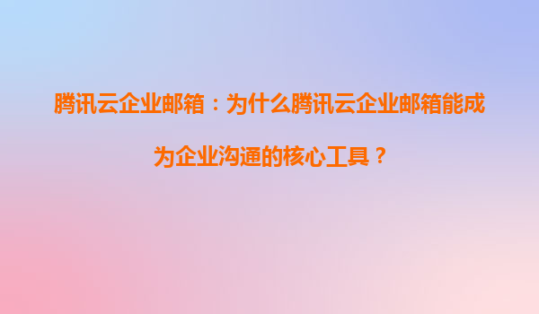 2025-05-17腾讯云企业邮箱:为什么腾讯云企业邮箱是中小企业首选的邮件解决方案? 一、腾讯云企业邮箱的核心优势 腾讯云企业邮箱依托腾讯集团强大的技术生态和云计算能力,为中小企业提供安全、稳定、高效的...