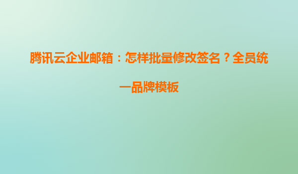 2025-05-16腾讯云企业邮箱:高效实现全员签名统一,塑造企业品牌形象 一、企业邮箱签名规范化的战略价值 在数字化商务场景中,邮件签名是每个员工对外沟通的「电子名片」。通过腾讯云企业邮箱的批量签名管理功能...
