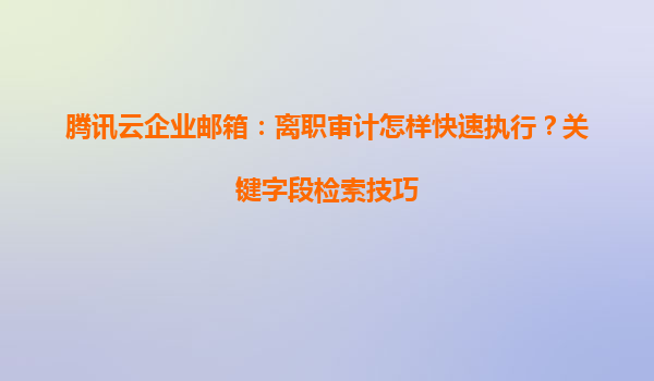 2025-05-16腾讯云企业邮箱:离职审计快速执行与关键字段检索技巧 一、离职审计的重要性与挑战 员工离职时,企业需确保其邮箱中的敏感数据(如客户信息、项目文件等)不被泄露或误删。传统审计流程常因数...