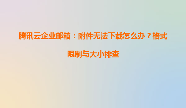 腾讯云企业邮箱:附件无法下载的常见原因与解决方案 一、附件无法下载的常见原因分析 使用企业邮箱时,附件下载失败可能由以下原因导致: 格式限制:企业邮箱可能对部分文件类型进行安全限制...