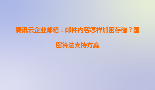 2025-05-16腾讯云企业邮箱:邮件内容加密存储与国密算法支持方案 一、邮件加密存储的必要性 随着企业对数据安全重视程度的提升,邮件作为核心沟通工具,其内容加密存储已成为企业信息安全的基本要求。腾讯云企业邮箱...