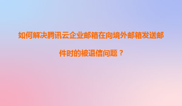 2025-11-05如何解决腾讯云企业邮箱在向境外邮箱发送邮件时的被退信问题 一、问题背景与原因分析 腾讯云企业邮箱因其安全稳定的特性深受企业用户信赖,但在向境外邮箱(如Gmail、Outlook等)发送邮件时,偶尔...