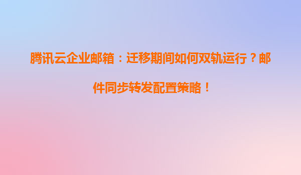 腾讯云企业邮箱:迁移期间如何双轨运行?邮件同步转发配置策略 一、企业邮箱迁移的背景与挑战 随着企业业务扩展和技术升级,邮箱系统迁移成为许多企业的必经之路。然而,迁移过程中可能面临数据丢失、服务...