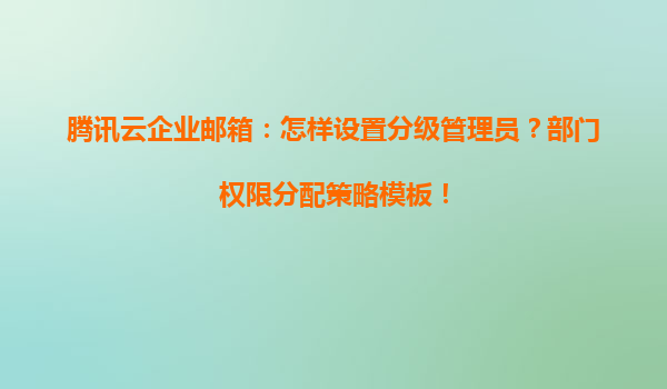 2025-05-09腾讯云企业邮箱:分级管理员设置与部门权限分配策略详解 一、腾讯云企业邮箱的核心优势 企业级安全保障:采用SSL加密传输与分布式防火墙,配备AI反垃圾引擎,拦截率超99% 灵活管理体...