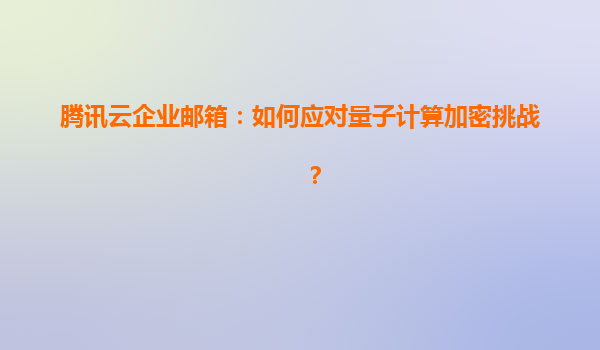 2025-05-01腾讯云企业邮箱:如何应对量子计算加密挑战? 随着量子计算技术的快速发展,传统加密算法面临前所未有的安全挑战。腾讯云企业邮箱凭借前瞻性技术布局与强大的研发实力,已构建起...