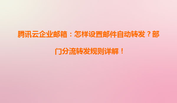 2025-05-09腾讯云企业邮箱:邮件自动转发与部门分流转发规则详解 一、为什么需要邮件自动转发? 在企业管理中,邮件自动转发能有效提升协作效率,例如将客户咨询邮件自动分派给对应部门,或备份重要邮件到指定邮箱。...