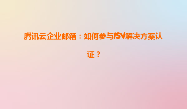 腾讯云企业邮箱:如何参与ISV解决方案认证? 一、腾讯云企业邮箱的核心优势 作为企业数字化转型的重要工具,腾讯云企业邮箱不仅提供基础的邮件服务,更以技术实...